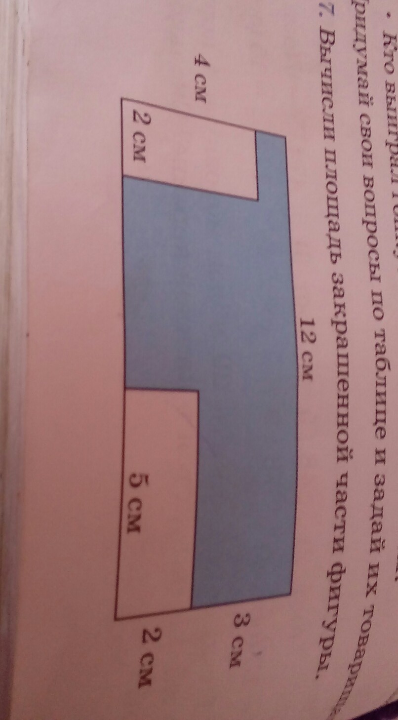 Вычисли площадь закрашенной части фигуры 12 см 3 сантиметра 2 сантиметра 5 см 4 см 2 см