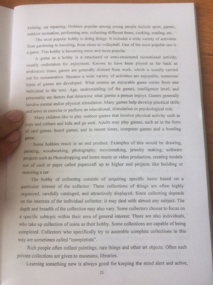 сотни лет назад не было никаких проблем, что трудящиеся могли бы сделать с их свободным временем. Их часы работы были настолько долго, что у них было почти никакого досуга. На сегодняшний день это даже трудно назвать все мероприятия, развлечения и хобби управляют люди в свое свободное время. Все большее число людей предпочитают смотреть фильмы, спектакли, спортивные мероприятия по телевизору, чтобы их посещать. Там существует совершенно иной вид досуга, торговли и азартных игр, например, которые дают тысячи людей надеются на огромный приз, и чувство волнения и ожидания. Существуют различные занятия, что люди выбирают, чтобы скоротать свое свободное время. В наши дни люди проводят наши программы смотрят разные информационные, образовательные или окружающей среды. Другие популярные занятия слушают радио, чтение книг, живописи и так далее. Многие люди предпочитают идти в различных видах спорта и вести активный образ жизни. Иногда они участвуют в соревнованиях или конкурсах и имеют очень хорошее времяпрепровождение. Есть люди, которые предпочитают спокойный способ провести свое свободное время. Они любят спокойных прогулок или прогулок в парках и садах. Более серьезные люди предпочитают посещать музеи, художественные галереи или театры. Аэробика и магазины находятся два самых популярных занятий для женщин. Приготовление пищи также очень широко распространенная активность среди них. Но ничто не может сравниться с чувством тех, кто принимает меня действительно заинтересованы в какой-то сфере деятельности, которая стала чем-то любимым и восхищались. "Хобби" является особый интерес или вид деятельности, что вы делаете в свободное время вас покинуть. У некоторых людей есть животные, как хобби. Они держат кроликов или отправиться на рыбалку. Они обучают собак делать трюки или держать театрализованные расы и передавать сообщения. Некоторые из них без ума от растений. Они пытаются выращивать кактусы или редкие тропические цветы на своих кухнях и гостиных. Другие безумны о своих автомобилях или мотоциклах. Они проводят их по субботам и воскресеньям мыть их, их покраску или покупать новые биты и куски, чтобы сделать их еще быстрее. Дети и подростки являются большие коллекционеры. Они собирают марки или открытки или фотографии любимого футбола или поп-звезды. Многие люди делают вещи в качестве хобби. У меня есть несколько хобби, которые занимают меня после школы, так и вне дома. Иногда я удивляюсь, как я соответствую их все в моем графике, потому что у меня есть много домашних заданий. Каждый день у меня не так много времени, чтобы расслабиться. В этот период я обычно отдохнуть после напряженного рабочего дня школы, слушать музыку, смотреть ТВ и видео, читать книги и журналы. Компьютер является одним из моих главных увлечений и интересов. Я выбираю компьютерную технологию как один из моих вариантов, и теперь я учусь в Белорусском государственном университете в этой области науки. Иногда я играть в игры, чтобы расслабиться. Каждые выходные я провожу много времени в World Wide Web. Я использую Интернет для учебного процесса, для нахождения специальной технической литературы по различным предметам и причины для удовольствия. У меня есть большое количество веб-друзей, и мы хотели бы тратить много времени на разговоры друг с другом.