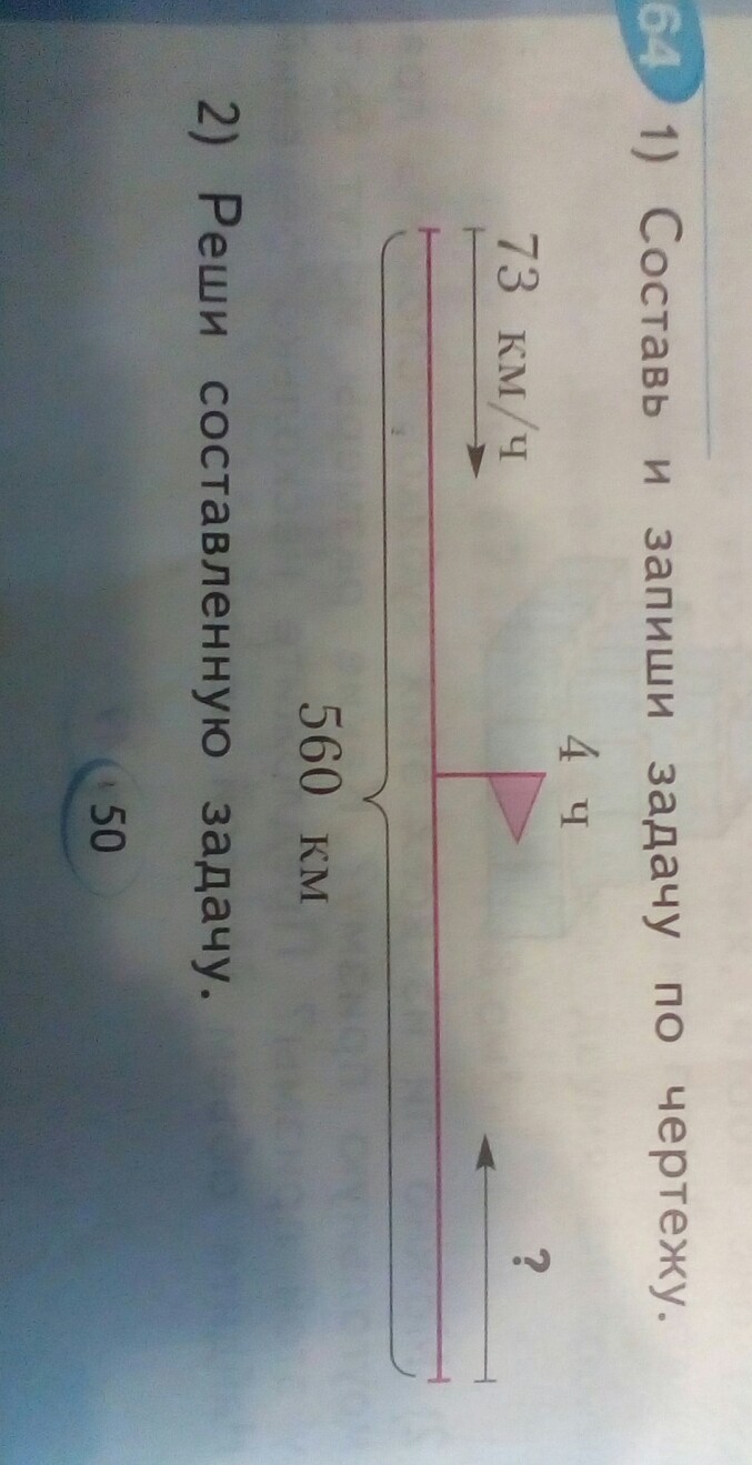 Из разных поселков выехали два автомобиля, которые встретились через 4 ч. Скорость первого автомобиля 73км/ч. Найдите скорость второго автомобиля если расстояние между поселками 560 км.