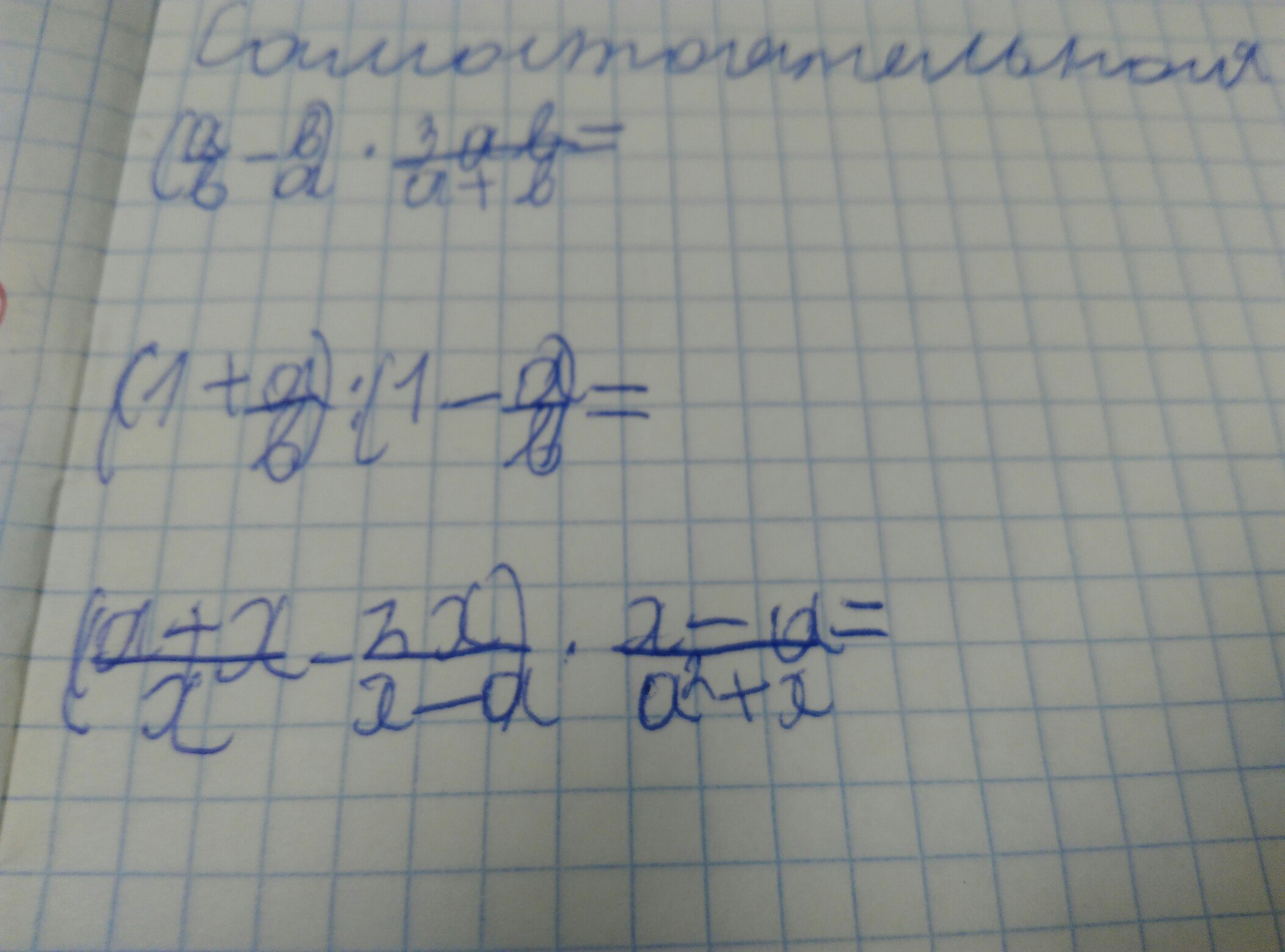 2)((b+a)/b)/((b-a)/b)=((b+a)/b)*(b/(b-a))=b^2-a^2