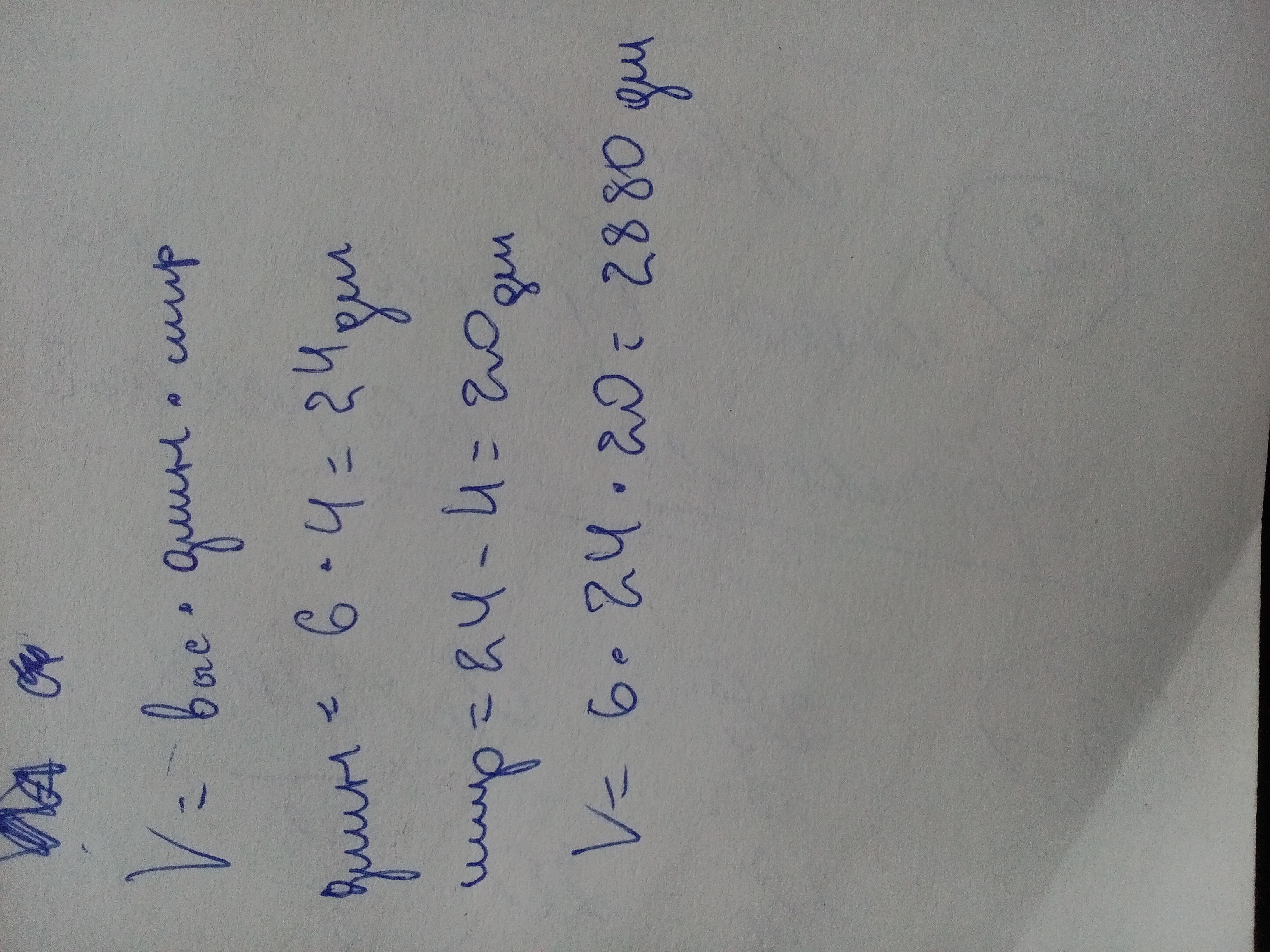 Вот. V=6*24*20=2880дм