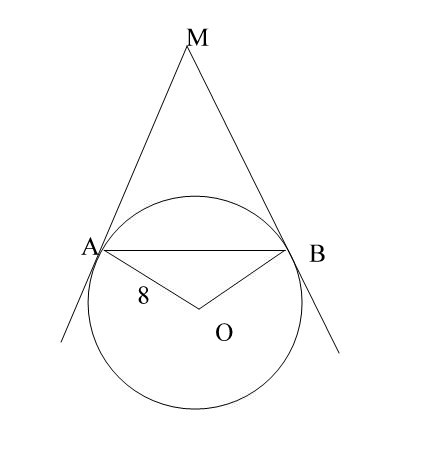 АО=r=8, угол ОЕА=90 гр, угол АОЕ=60 гр, следовательно, угол ОАЕ=30 гр.