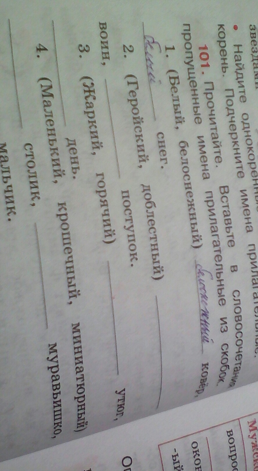 доблестный воин,геройский поступок,горячий утюг,жаркий день,миниатюрный столик,крошечный муравьишко,маленький мальчик.