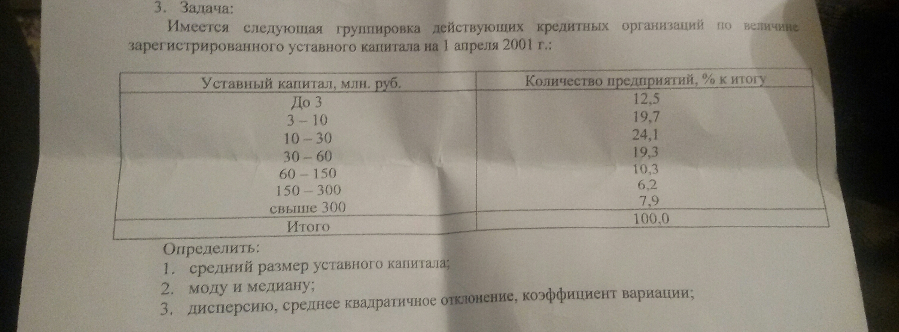 Ответ : средний размер капитала 35 мода и меридиана 2,4 коэффициент 85%