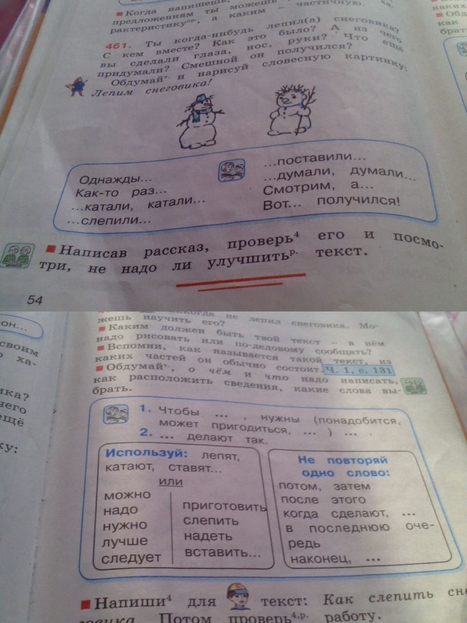 Я лепила снеговика. Это было очень весело! Сначала я слепила маленький комочек, потом я катала его по сугробам. Вскоре у меня получились три больших круга: один самый большой, другой поменьше а третий совсем маленький. Это была голова. Я сходила в магазин, купила морковь и две конфеты. Конфеты это были глаза а нос это морковь. Из веточек которые я нашла получились руки. Я сходила домой и взяла ведро это шляпа снеговика. Вот и всё, снеговик готов!