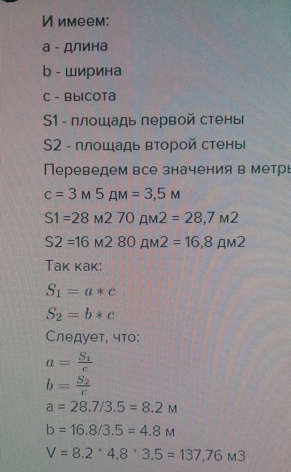 Вычисли объем всей комнаты если высота 3 метра 5 дециметров площадь одной стены 28м в квадрате 70 дм в квадрате площадь другой стены 16 м в квадрате 80дм в квадрате