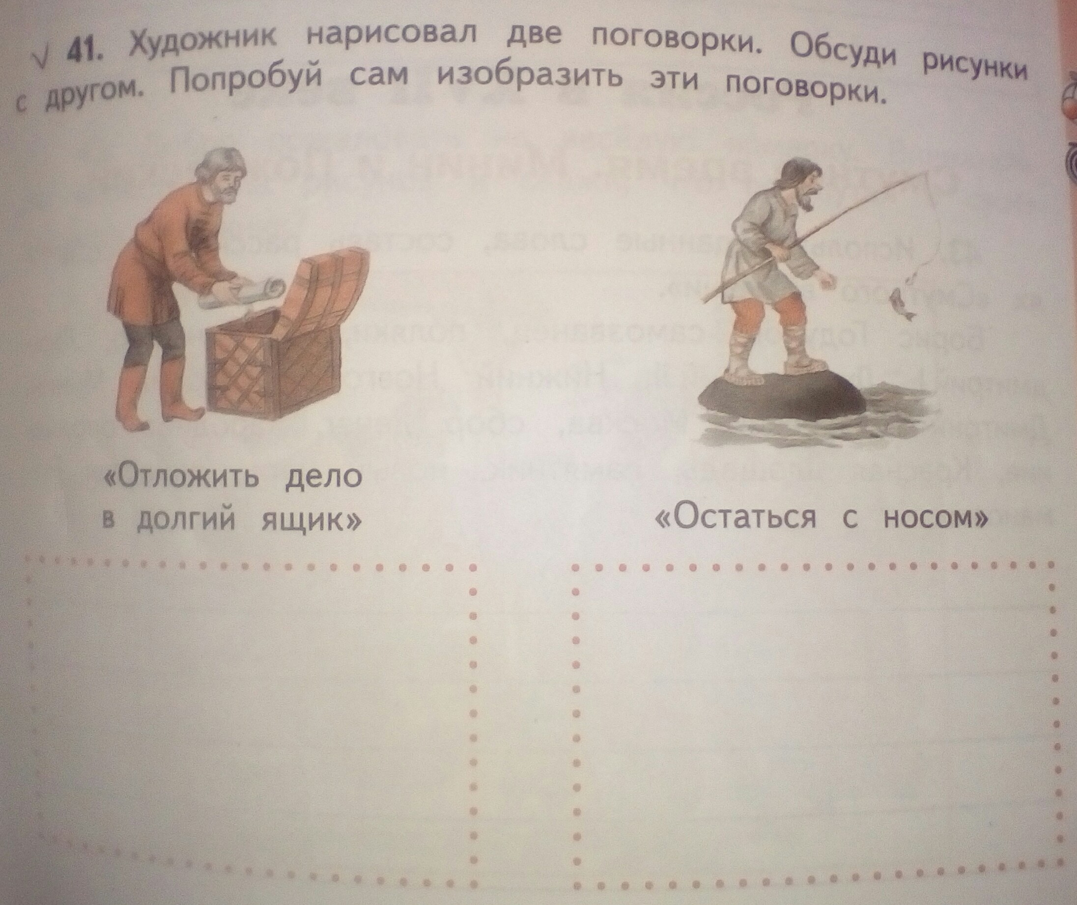 ХУДОЖНИК НАРИСОВАЛ ДВЕ ПОГОВОРКИ. ОБСУДИ РИСУНКИ С ДРУГОМ. ПОПРОБУЙ САМ ИЗОБРАЗИТЬ ЭТИ ПОГОВОРКИ