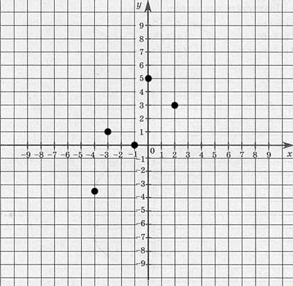 начертите прямоугольную систему координат и постройте точки с заданными координатами: 1) х=2, у=3; 2) х=-3, у=1; 3) х= -4,у=-3; 5)х=-1, у =0; 6) х=0,у=5.
