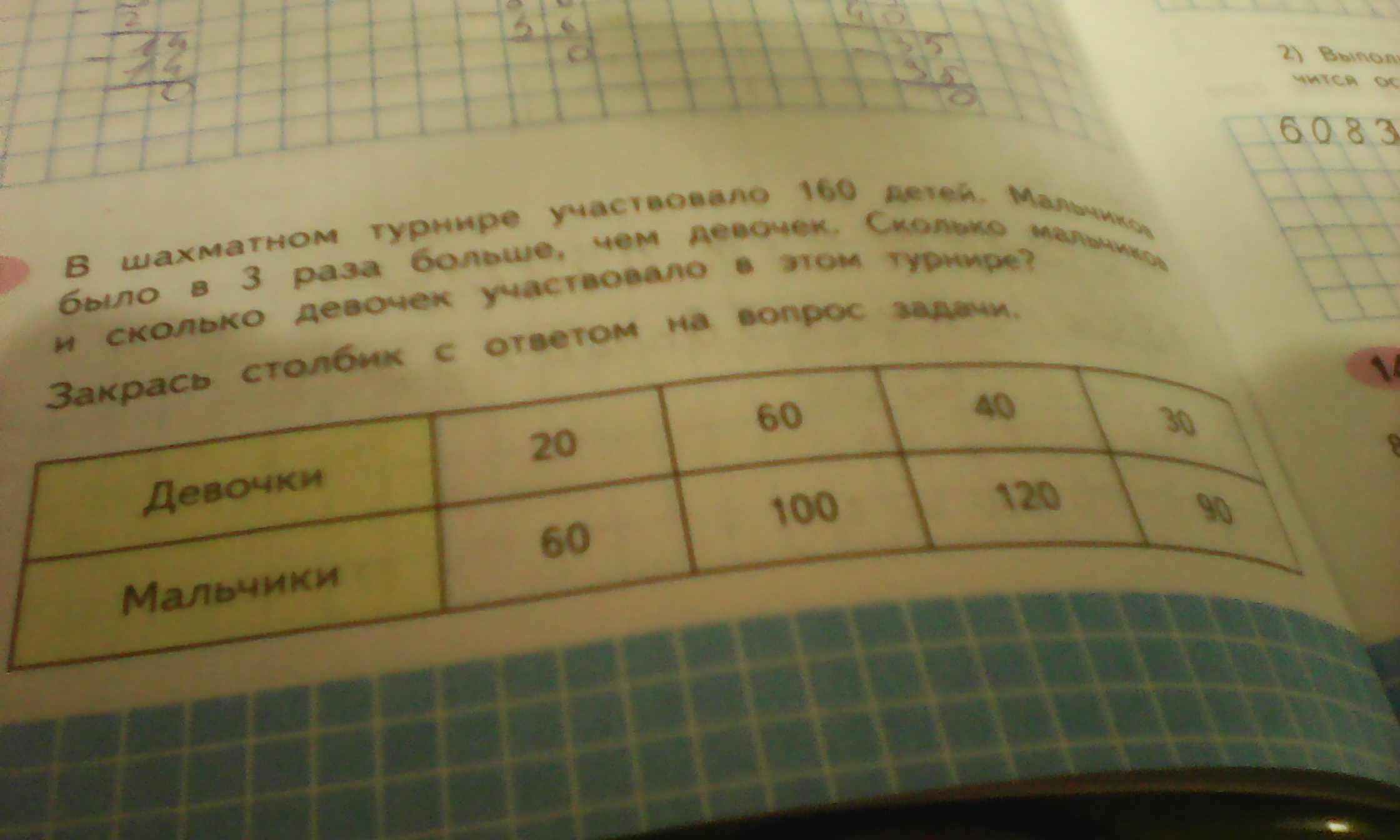160:4=40 ДЕВОЧЕК! 40*3=120 МАЛЬЧИКОВ.
