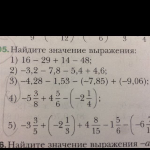 4)-5 3/8+4 5/6-(-2 1/4)=-5 3/8+10 13/12=5 9+26/24=5 35/24