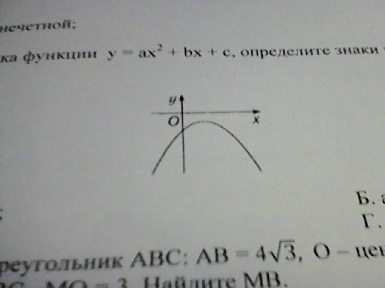По рисунку графика функции y=ax^2+bx+c, определите знаки коэффициентов a, b, c и дискриминанта D.