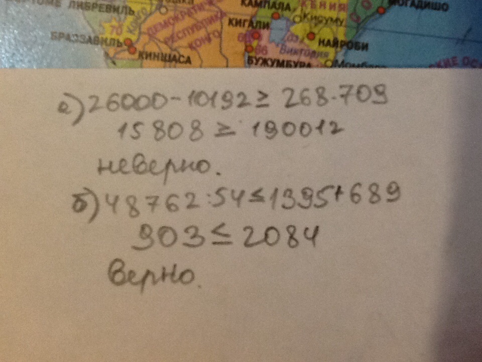 запиши неравенство и проверь верны ли они : а) разность чисел 26000 и 10192 больше или равна произведению чисел 268 и 709.