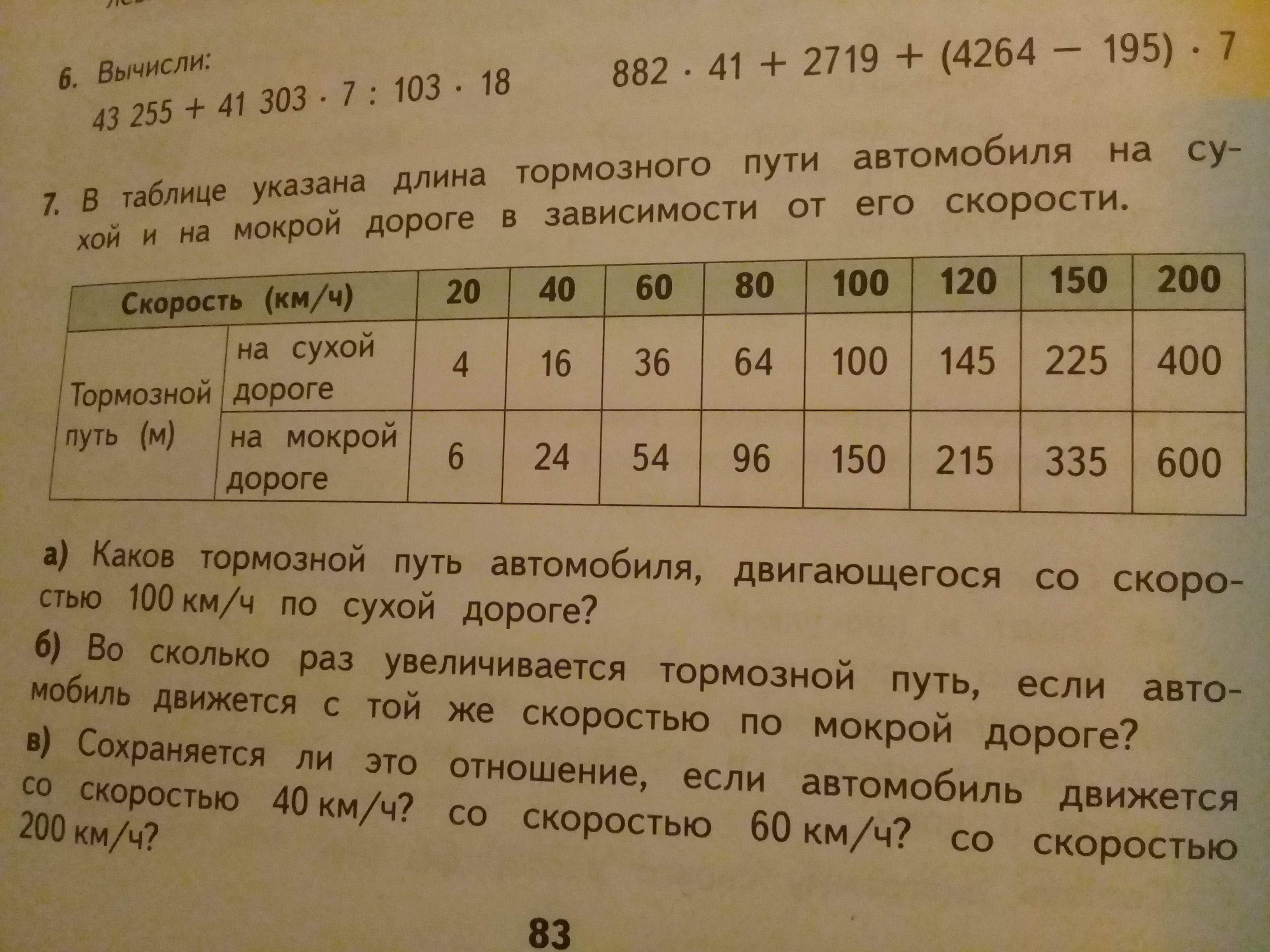 В таблице указана длина тормозного пути автомобиля на сухой и на мокрой дороге в зависимости от его скорости.
