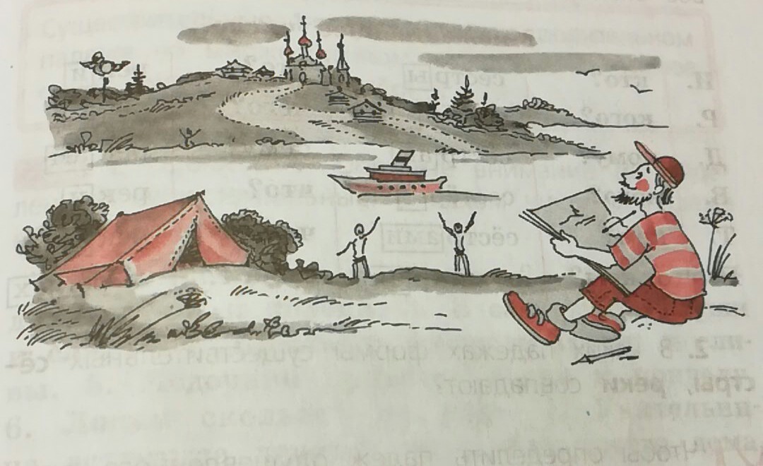 Я сижу и рисую картины. Я художник. Передо мной стоят 2 мальчика Машут руками.