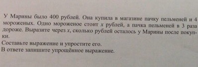 3х+4х=7х-стоит одна пачка пельменей и 4 мороженых.