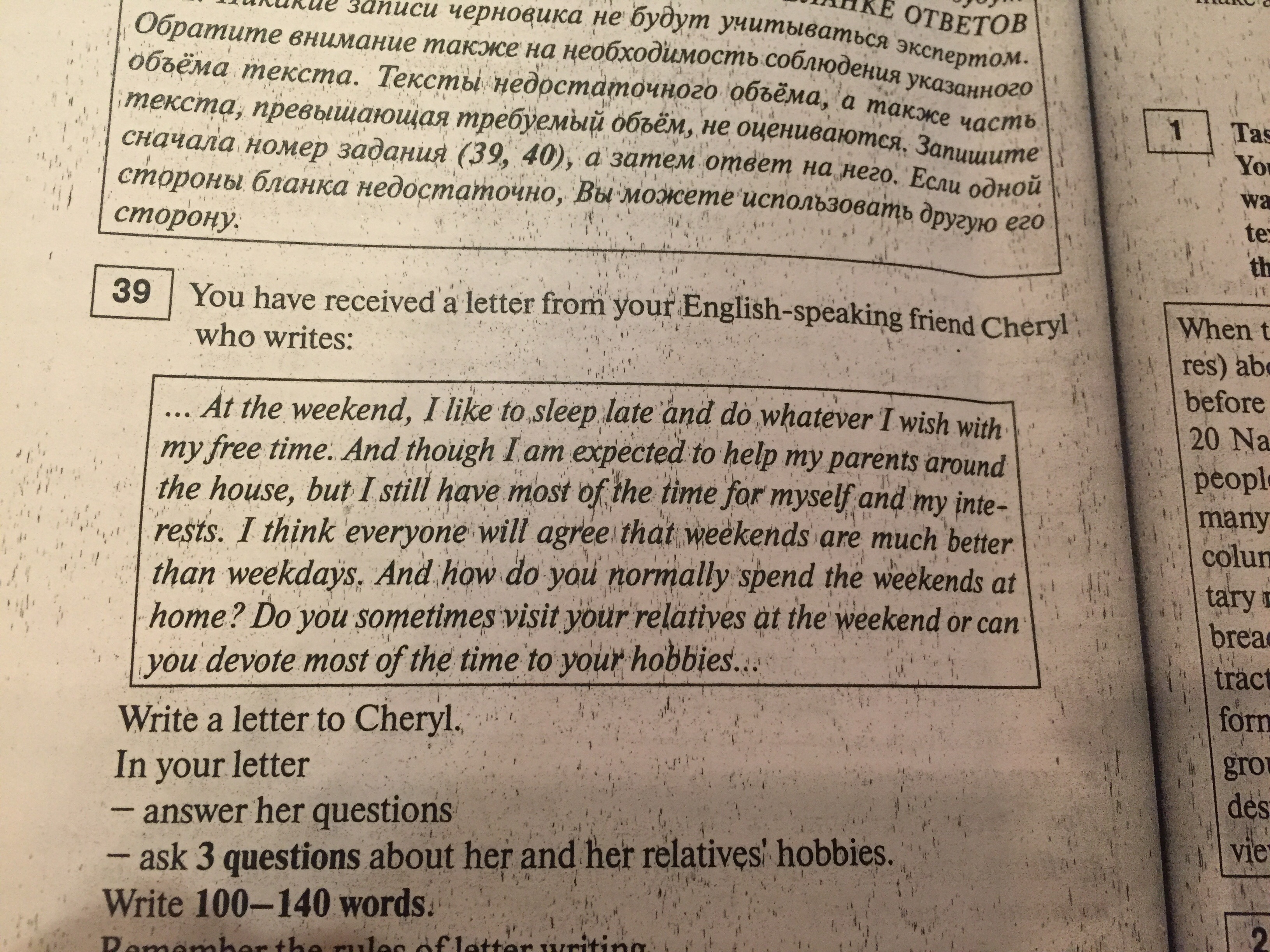 . At the weekend, I like to sleep late and do whatever I wish with my free time. And though I am expected to help my parents around the house, but I still have most of the time for myself and my interests. I think everyone will agree that weekends are much better than weekdays. And how do you normally spend the weekends at home? Do you sometimes visit your relatives at the weekend or can you devote most of the time to your hobbies...