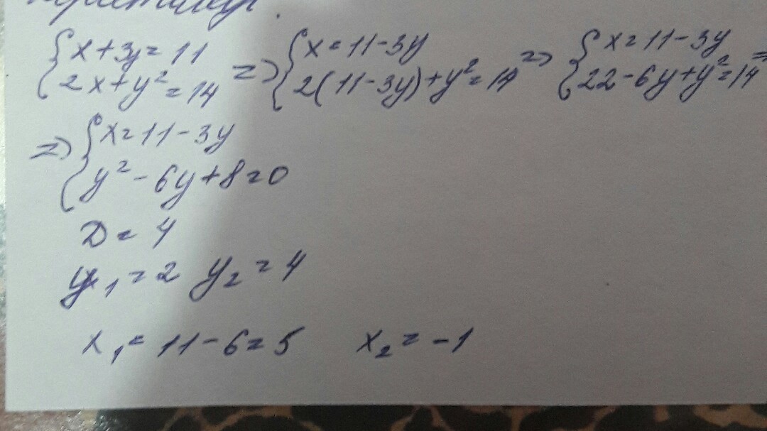 а) (х²+y=17,           б) (x+3y=11,