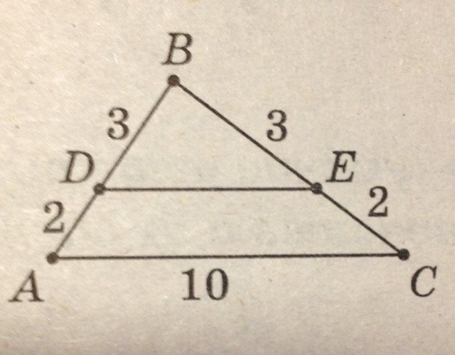 Треугольники АВС и DВЕ подобны, так как угол В - общий, соответственные стороны