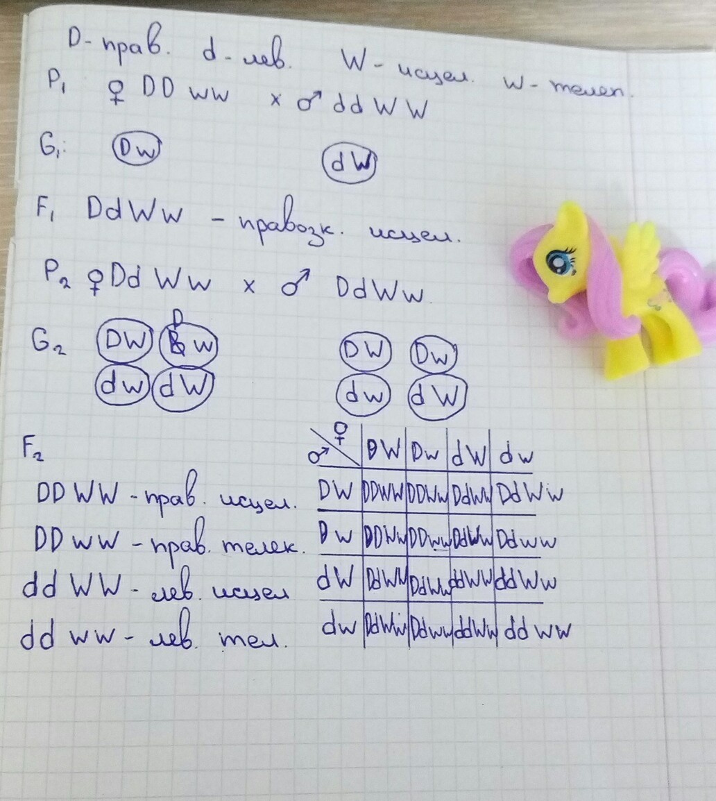 расчитывать генотип единорогов в 2 часа ночи...это мощно, если подчерк не понятный-пиши, расшифрую
