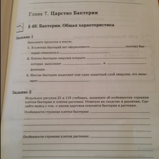 вывод:Клетки бактерий во многом отлич.от растительных.Поэтому можно сказатьчто они почти не имею общих т
