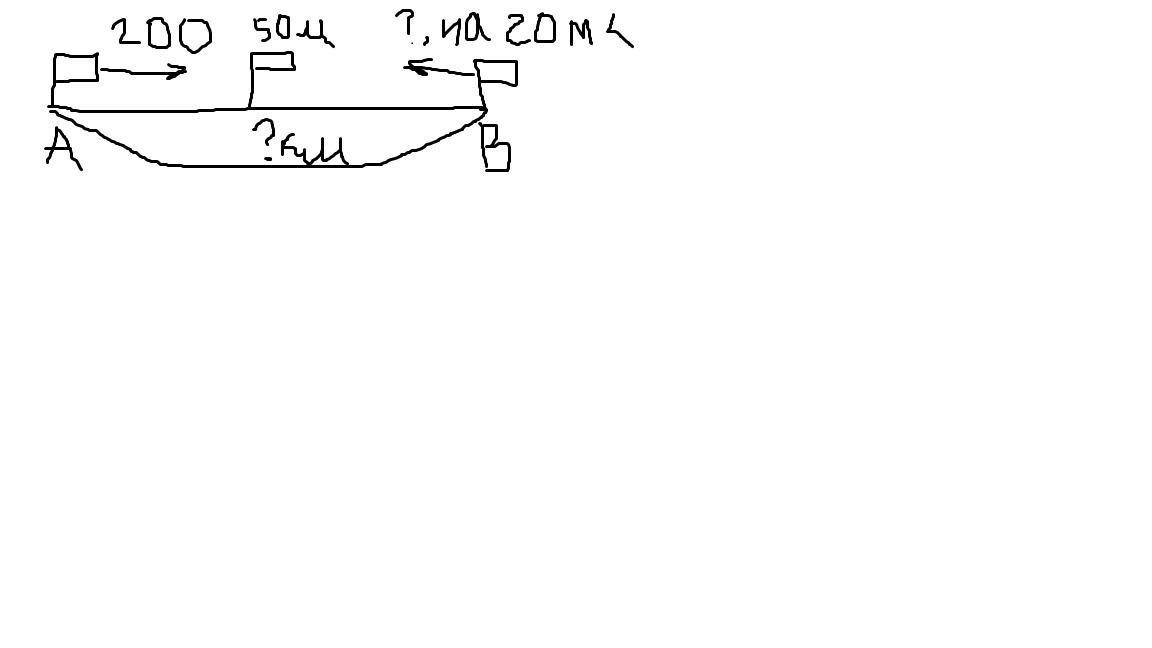 Чертёж можно пожалуйста!? Из двух посёлков выехали одновременно навстречу друг другу два всадника. Первый ехал со скоростью 200 ммин, а второй проезжал в минуту на 20 м меньше. Всадники встретились через 50 мин. Найди расстояние между посёлками.