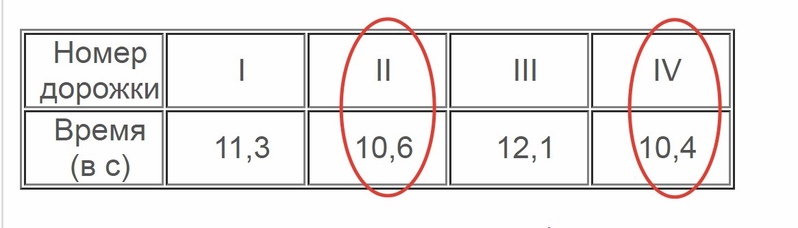 Ответ: зачет получили ученики, бежавшие по II и IV дорожкам.