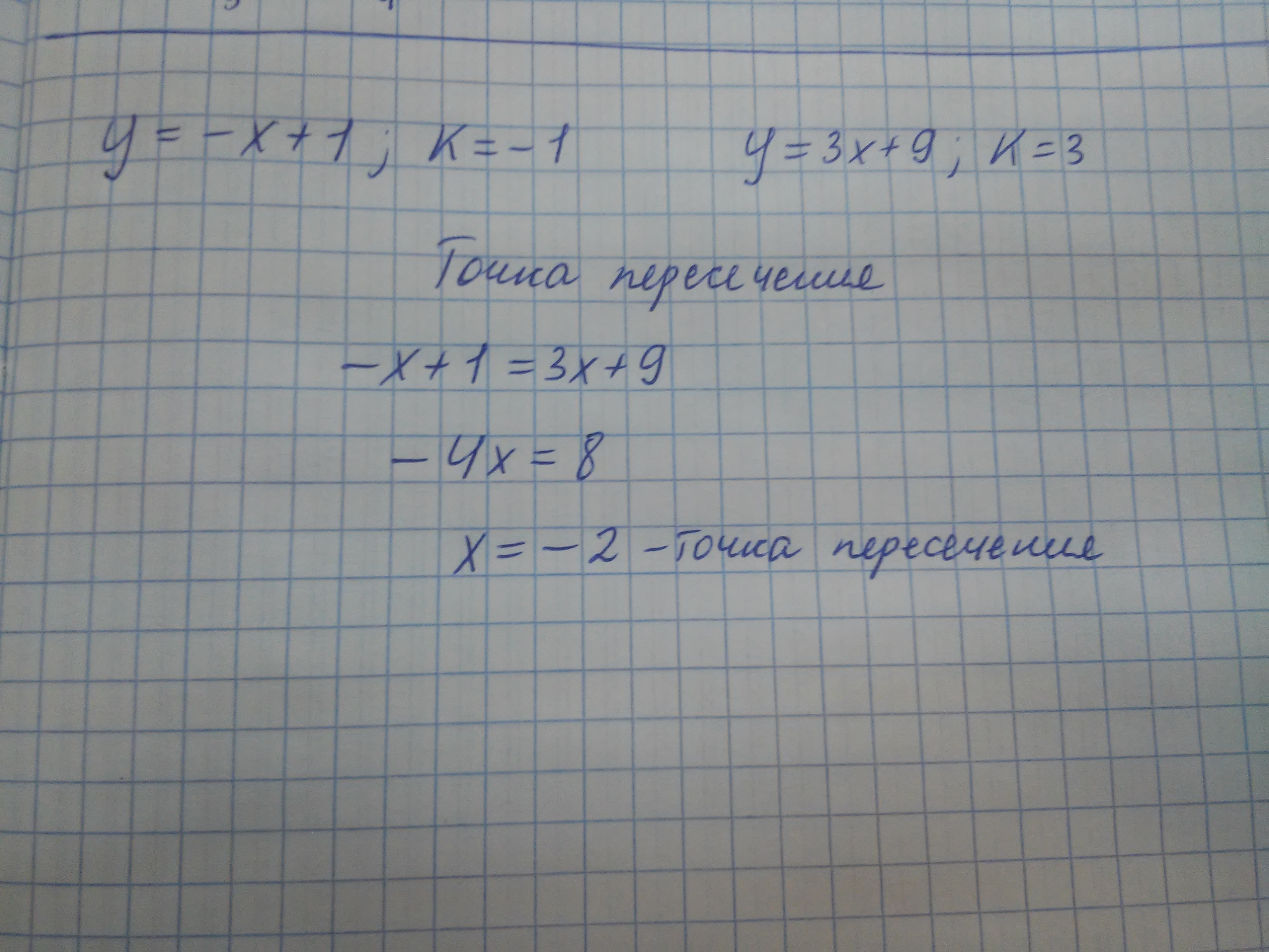 А чтобы найти точку пересечения нужно две прямые просто приравнять. Успехов!