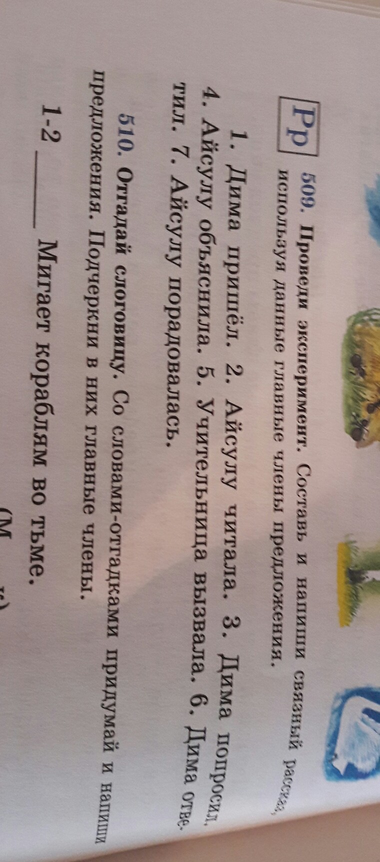 Дима пришёл к Айсулу домой. Айсулу сидела возле окна и читала. Дима попросил её обьяснить как сделать домашнее упражнения по русскому языку. Айсулу смогла очень понятно обьяснить Диме задание.