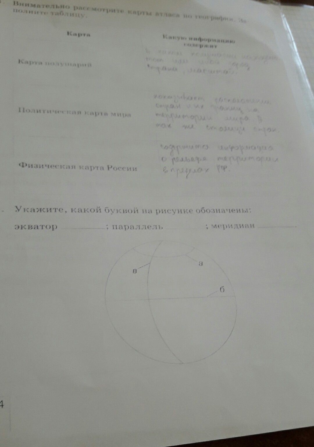 Экватор-б;параллель-а;меридиан-в.