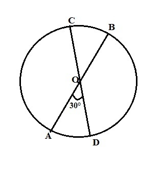 Диаметр АВ делит своими концами окружность пополам, следовательно, дуга ADB=180°. Центральный угол АОD=30°, значит <DOB=180°-30°=150°.