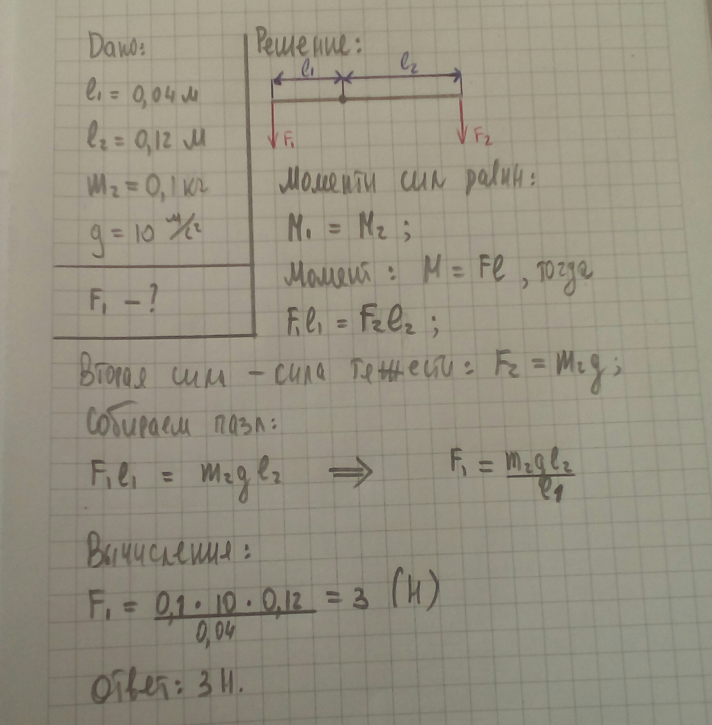 Определите показания динамометра. прикрепленного к правому плечу ры- чага на расстоянии l1 = 4.0 см от точки опоры если к левому плечу длиной l2 = 12 см прикреплен груз массой m2 = 100 г коэффициент g принять равным 10