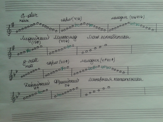 Построить от ноты соль, три вида мажора. Включая лидийский, миксолидийский, маж. пент. Еще три вида минора включая дорийский, фригийский, мин. пент. Ответ дайте пожалуйста фоткой)