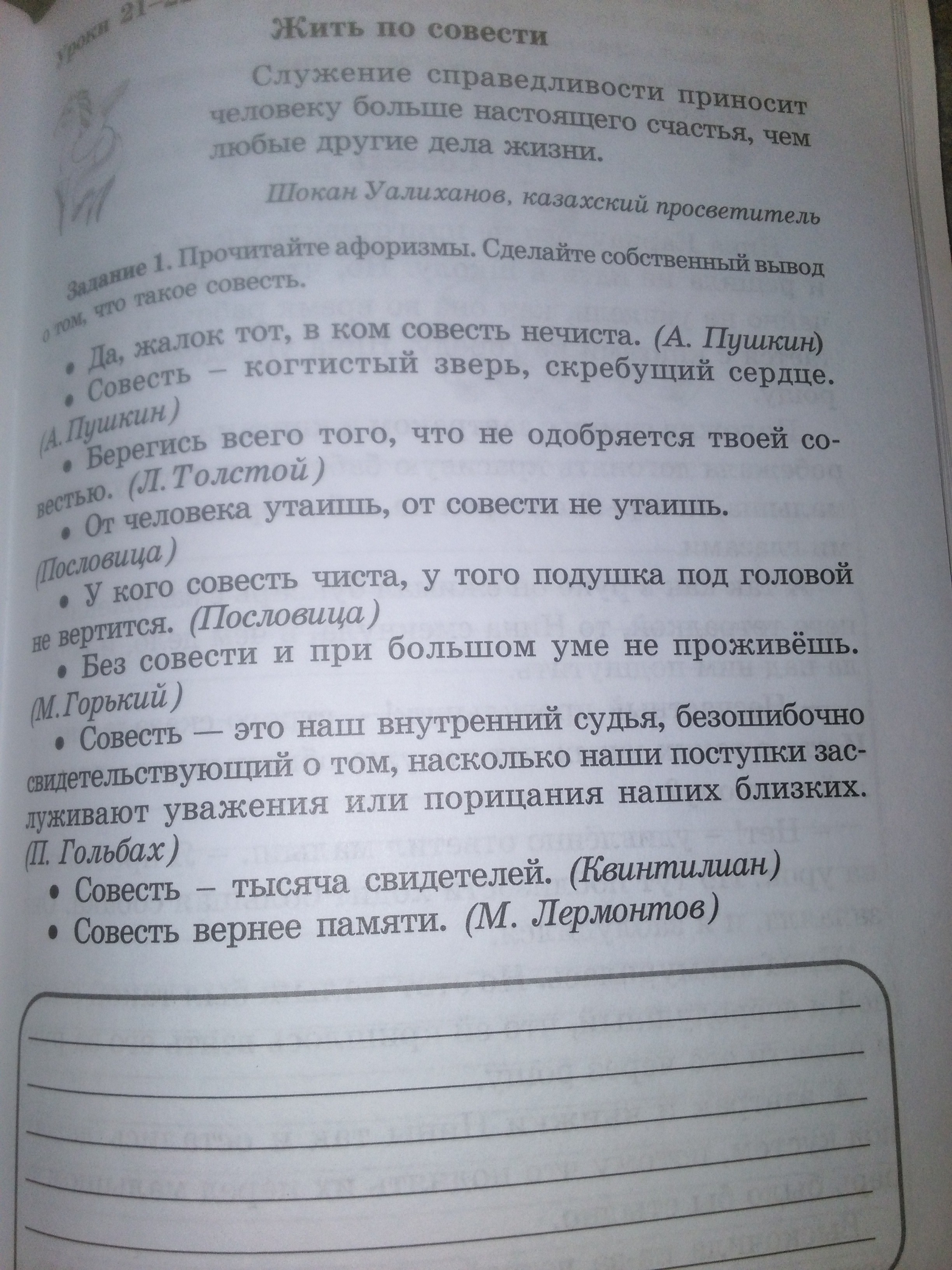 Совесть-это внутренее высказывание твоего тела.Например:твой друг принёс в школу конфету,и положил её в рюкзак.Тебе ну ооочень хотелось её съесть.Ты подошёл к рюкзаку и открыл его.Там ты увидел конфеты.Ты сразу же съел несколько конфет.На следующий день тебя мучает совесть.Поэтому в таких ситуациях нужно либо сказать другу правду(если уже съел конфету).Либо попросить его самого конфету)))