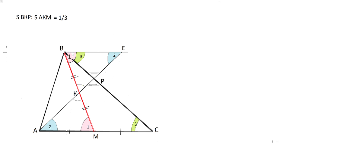 S ᐃ ВКР=⅓ ᐃ SАВС - ¼ S ᐃ АВС= ¹/₁₂ S ᐃ АВС