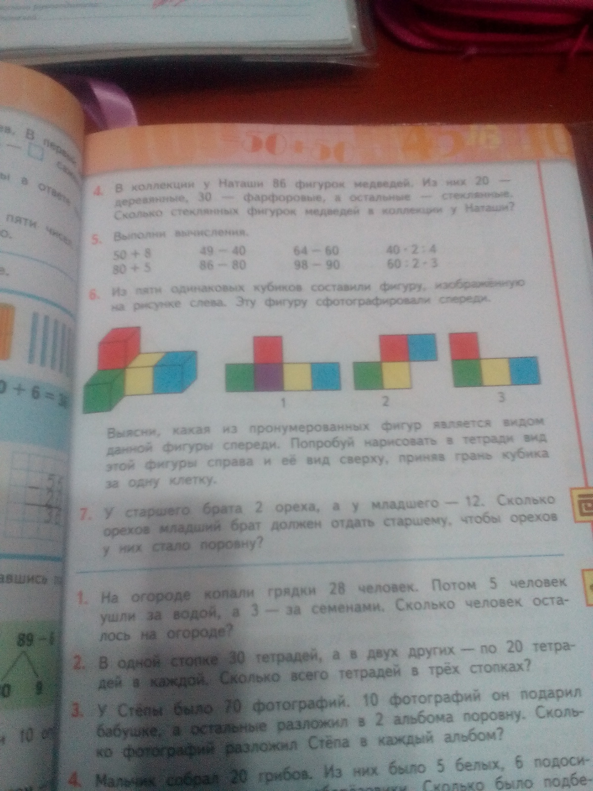 Из пяти одинаковых кубиков составили фигуру,изображенную на рисунке слева.Эту фигуру сфотографировали слева.