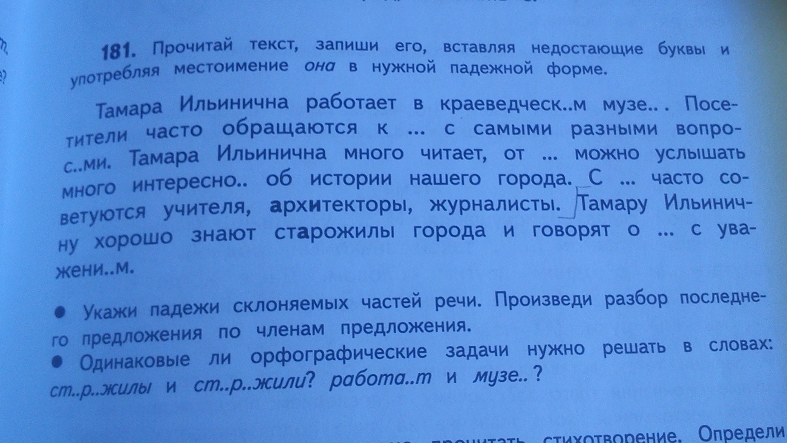 Прочитай текст,запиши его,вставляя недостающие буквы и употребляя местоимение -ОНА- нужной падежной форме