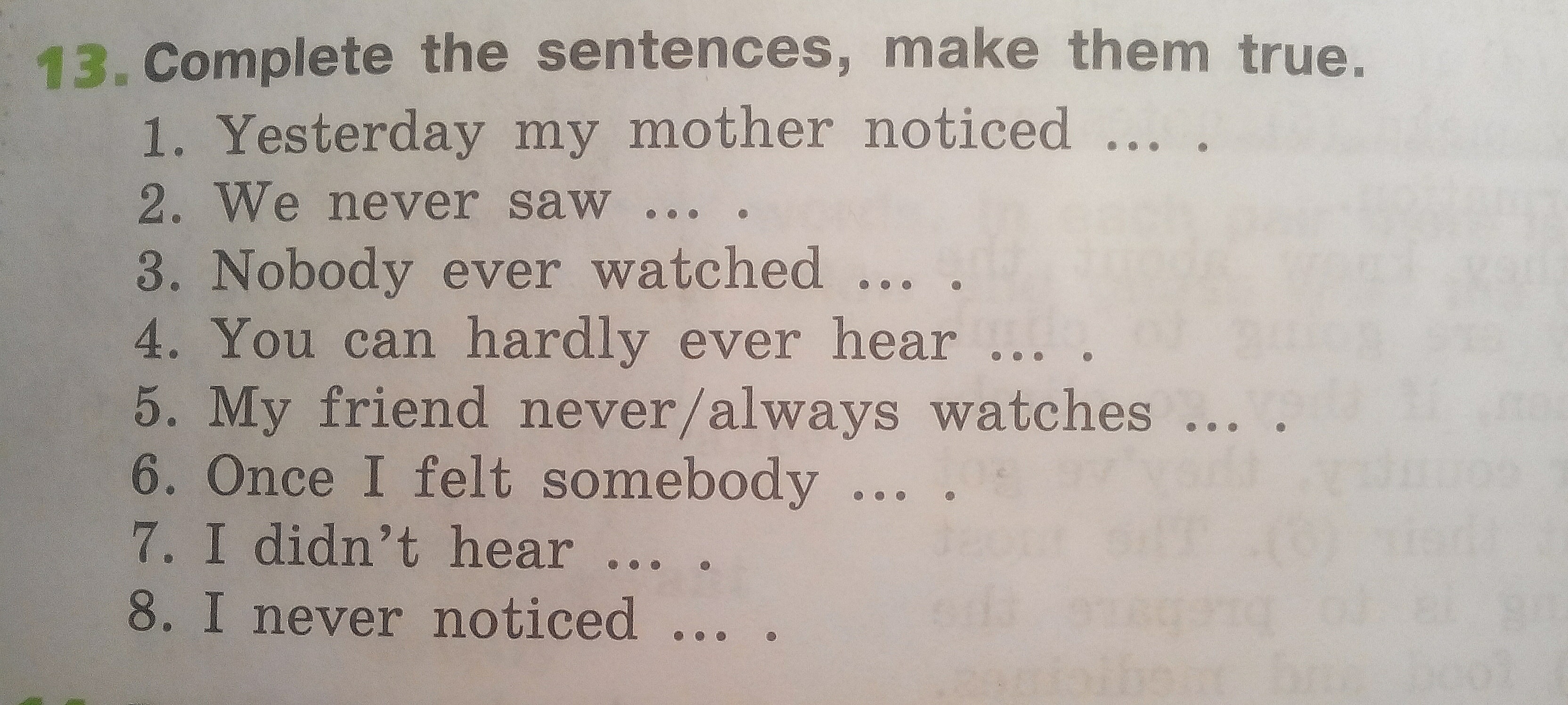 Помогите, пожалуйста!) Ответ отмечу ЛУЧШИМ!!! Complete the centences, make them true.