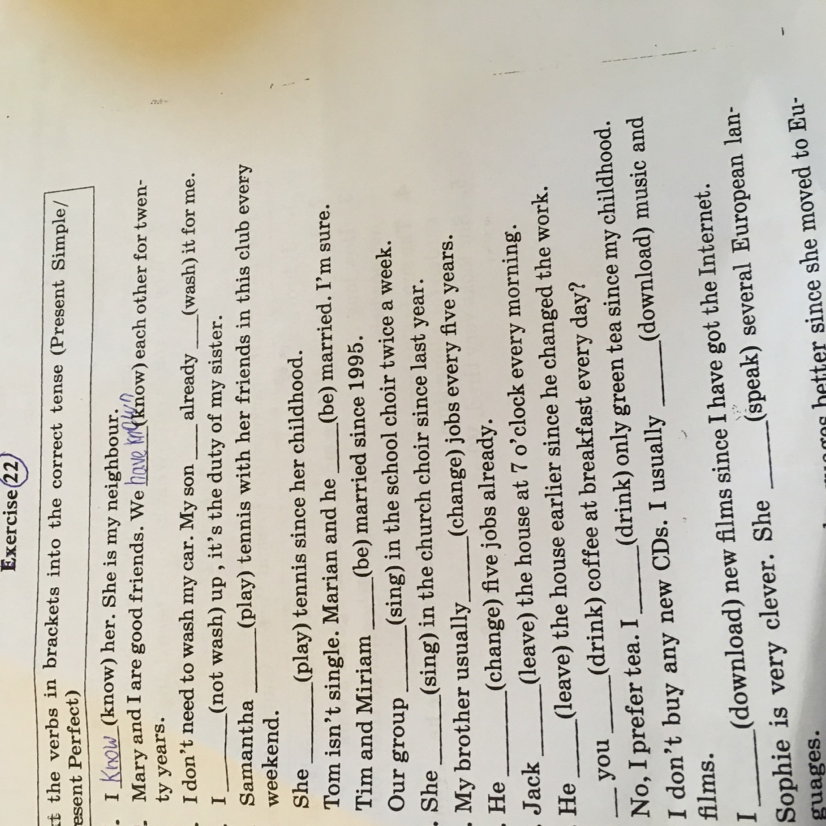 Написать глаголы в правильной форме.