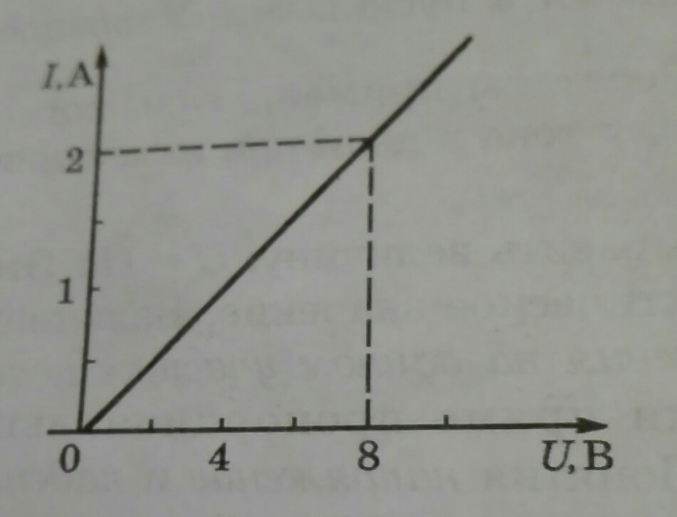 по графику можно догодаться что сопротивление 4 ом когда будет 12 вольт по нему протечёт 3 ампера