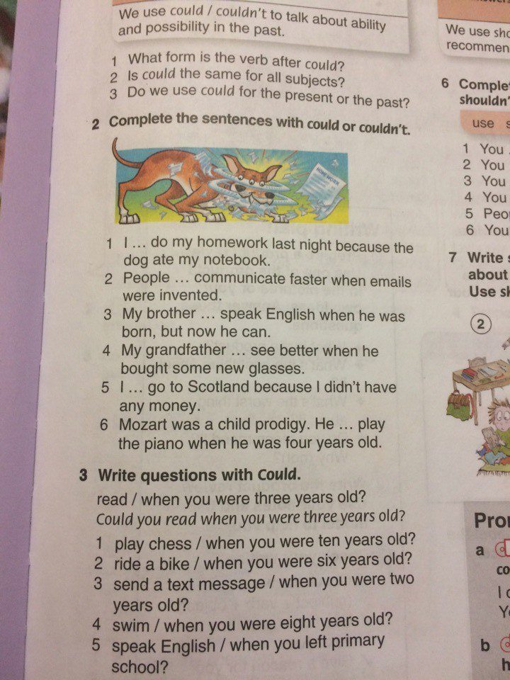 1Could you play chess when ….? 2 Could you ride a bike when …? 3 Could you send a text message when …? 4 Could you swim when …? 5 Could you speak English when …?