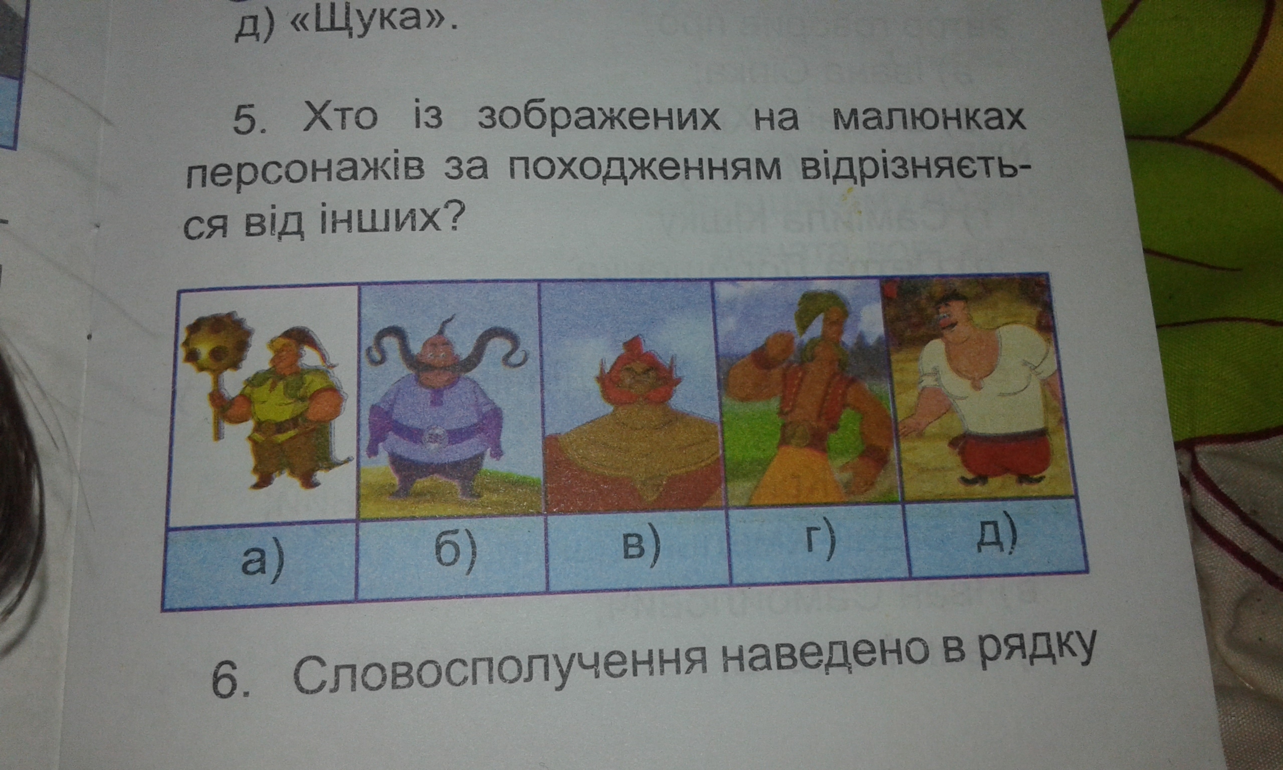 Хто із зображених на малюнках персонажів за походженням відрізняється від інших?