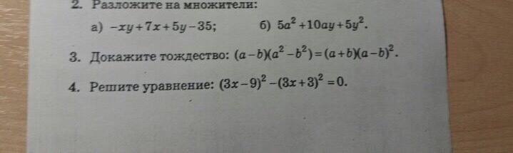 2) a) -xy + 7x + 5y - 35 = x(-y + 7) - 5(-y + 7) = (x - 5)(7 - y)
