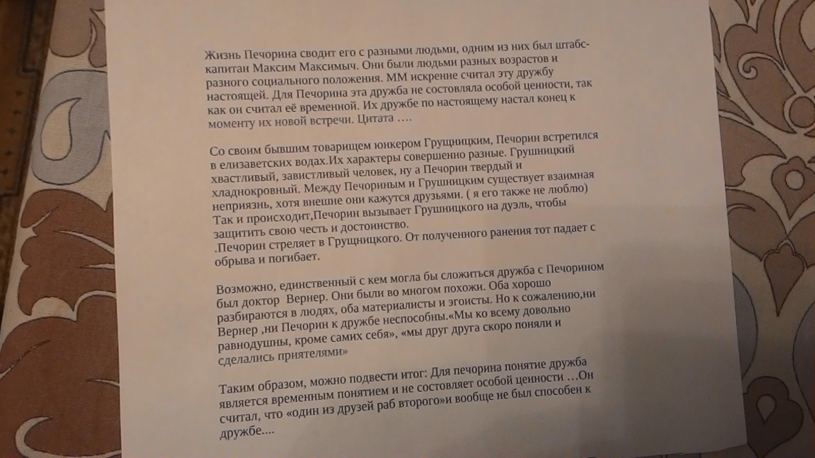 3. Пунктуация: "Со своим бывшим товарищем, юнкером Грущницким, Печорин....."( так как "юнкером Грущницким" - приложение)