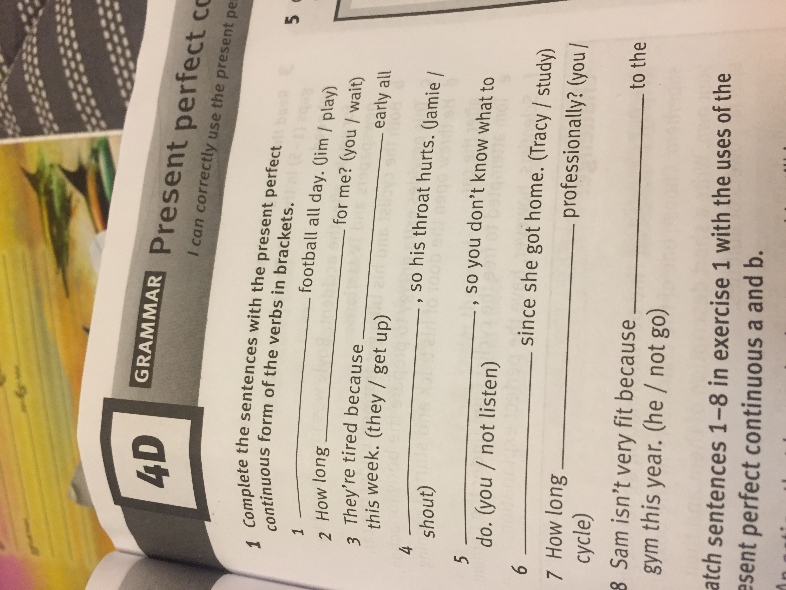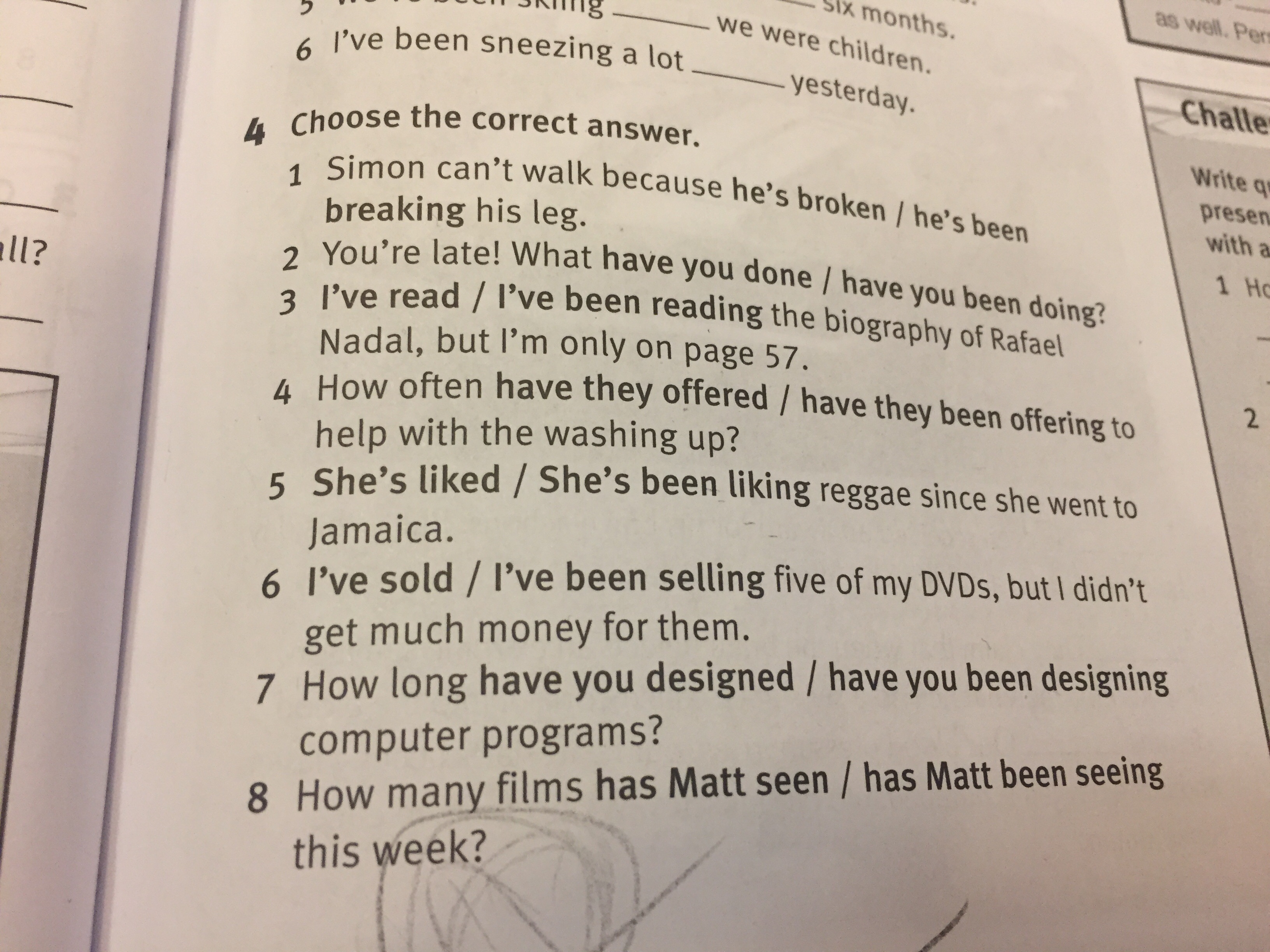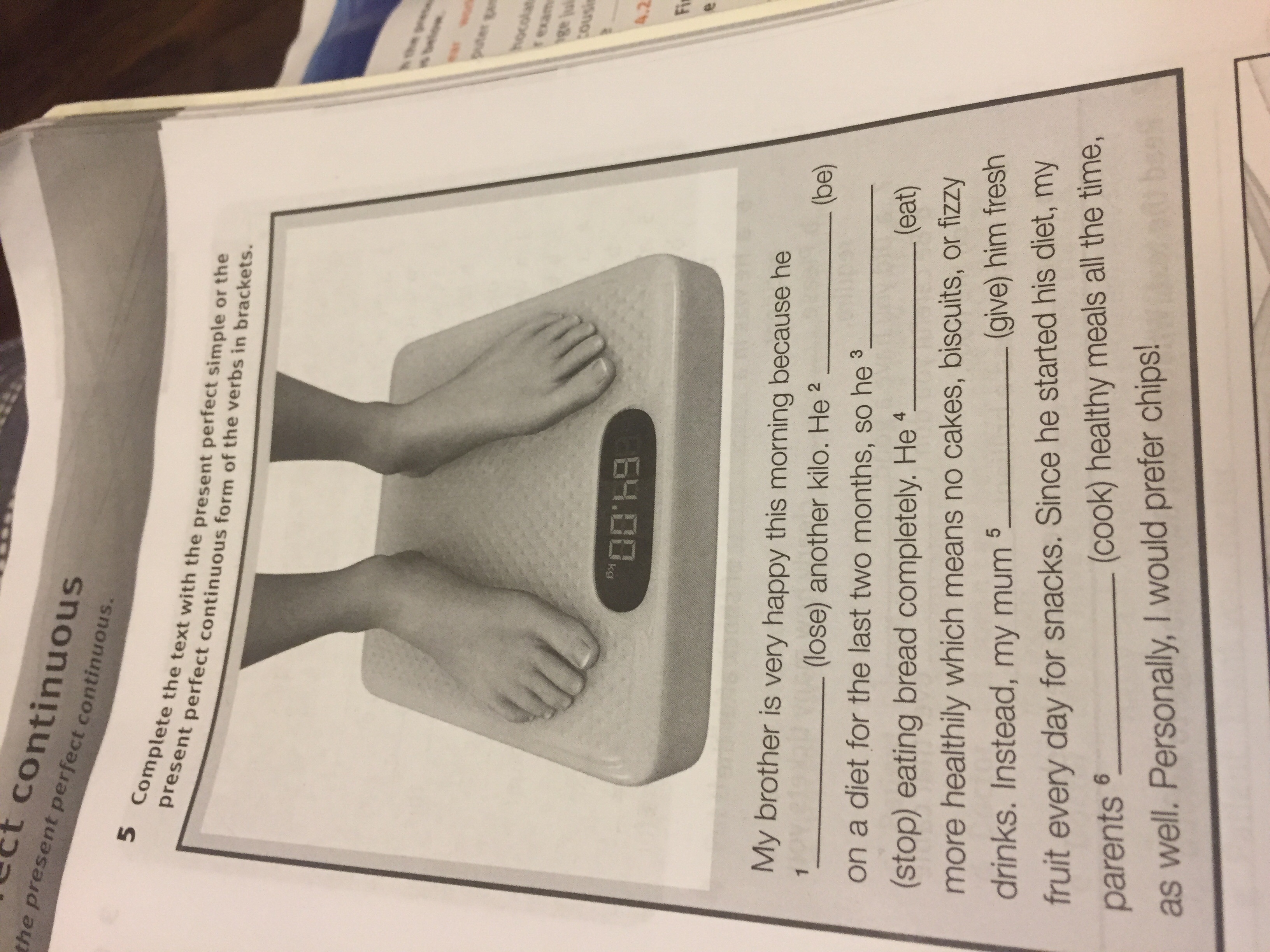 5. has lost, has been, has stopped, has been eating, has given, have been cooking