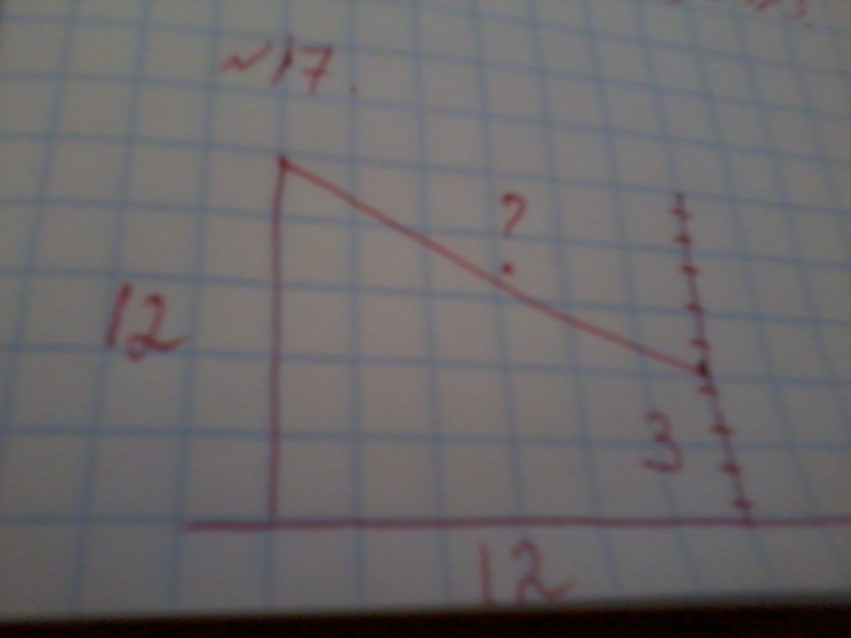 От столба высотой 12 м к дому натянут провод,который крепится на высоте 3 метра от земли.Расстояние от дома до столба 12 м.Вычислите длину провода.