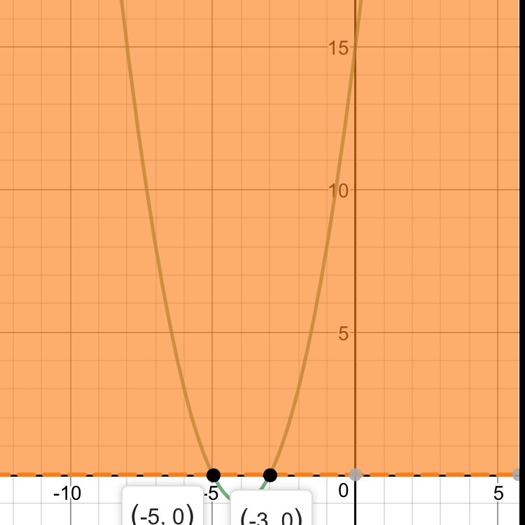 Строим график функции и выбираем значения x,при которых ордината положительна;Ответ:от минус бесконечности до -5 объединение от -3 до плюс бесконечности.