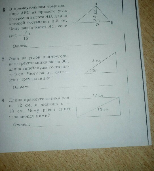 6. АС=7,5, тк sinС=AD/АС, те 1/2=3,5/х