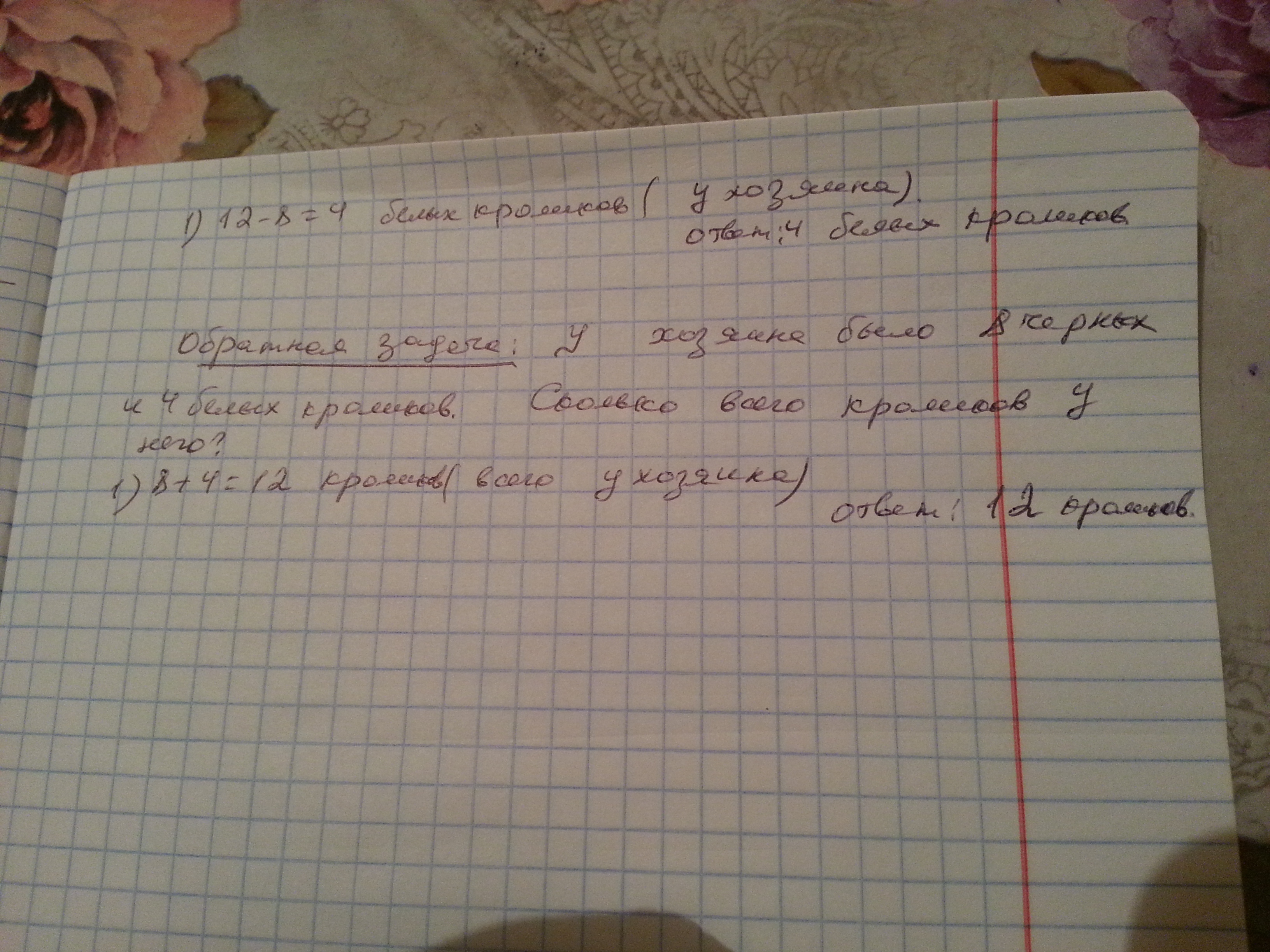 Помогите пожалуйста решить задачу,У хозяина было 12 кроликов: 8 чёрных, а остальные белые. сколько было белых кроликов . Составь и реши ЗАДАЧИ обратные данной.