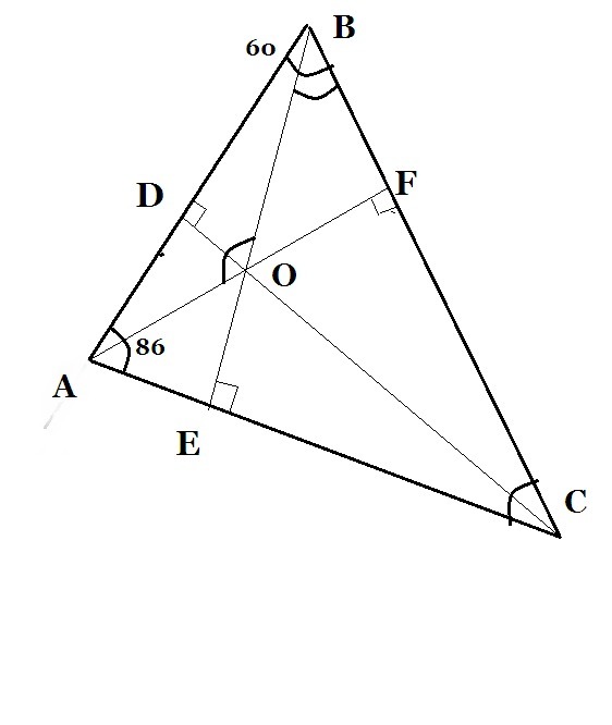 Величина угла A=86,величина угла B=60°.Определи угол ∡AOB.