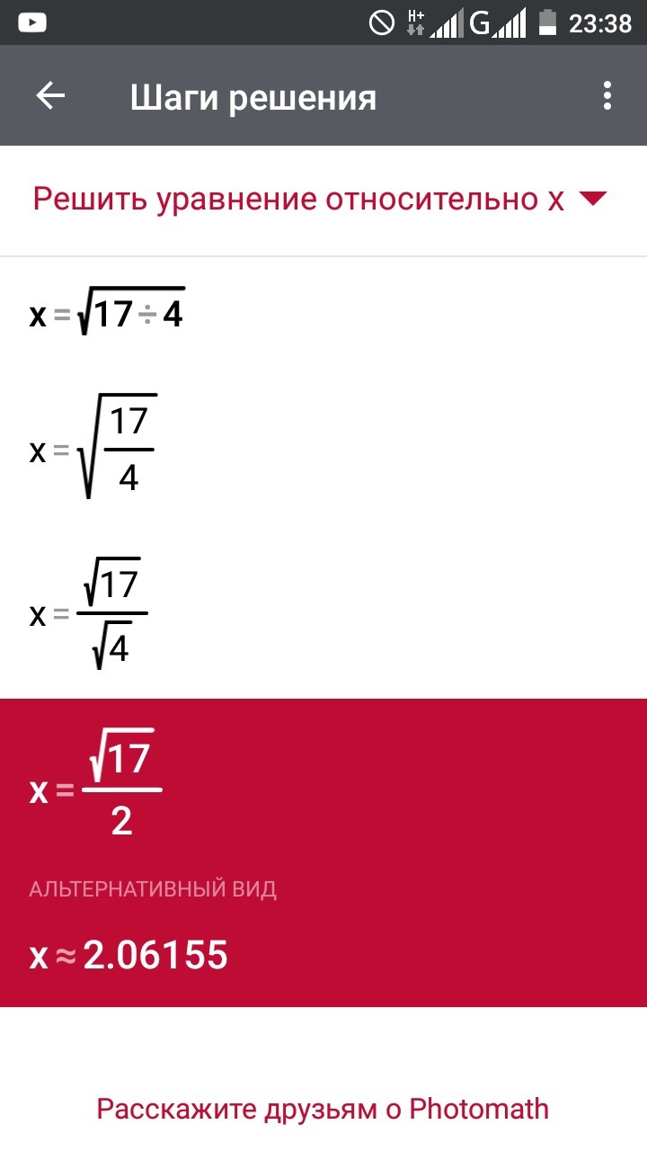х= ±√17:4